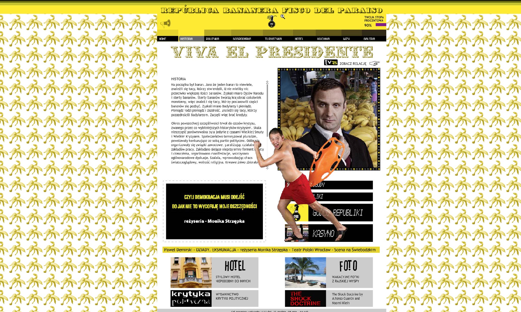 PL: Wydaje ci się, że jesteś konsumentem doskonałym? Mylisz się! Farsa Śmierć podatnika umożliwi ci luksusową rozrywkę, na którą niewątpliwie zasługujesz. Płacisz – wymagaj! Wieczór uświetni specjalny występ ekskluzywnej grupy 200 tysięcy martwych statystów.